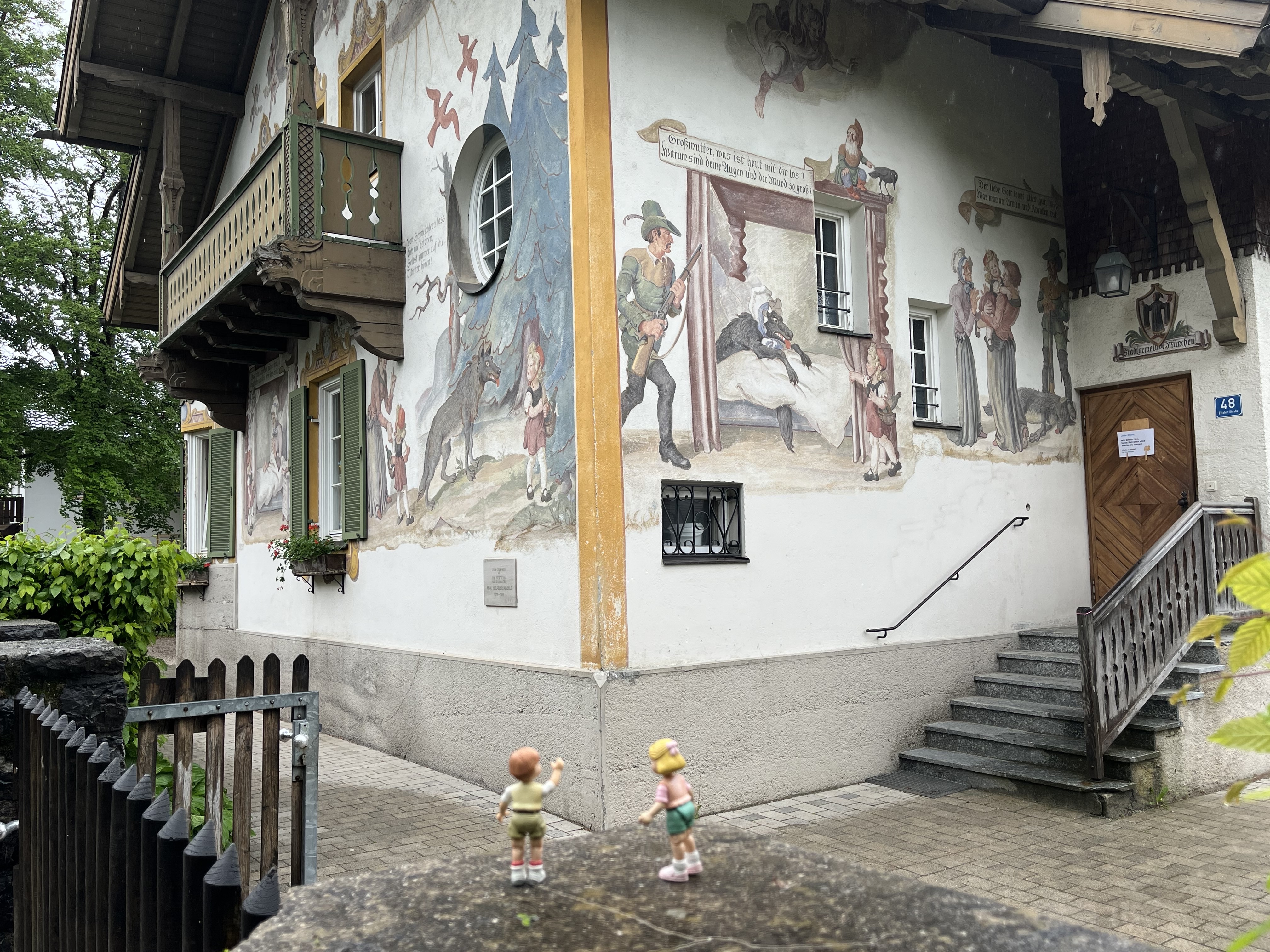 Before we get to see the event of the decade, we spent a rainy afternoon exploring the village of Oberammergau. We saw lots of painted houses, this was our favourite. It showed the story of Red Riding Hood.