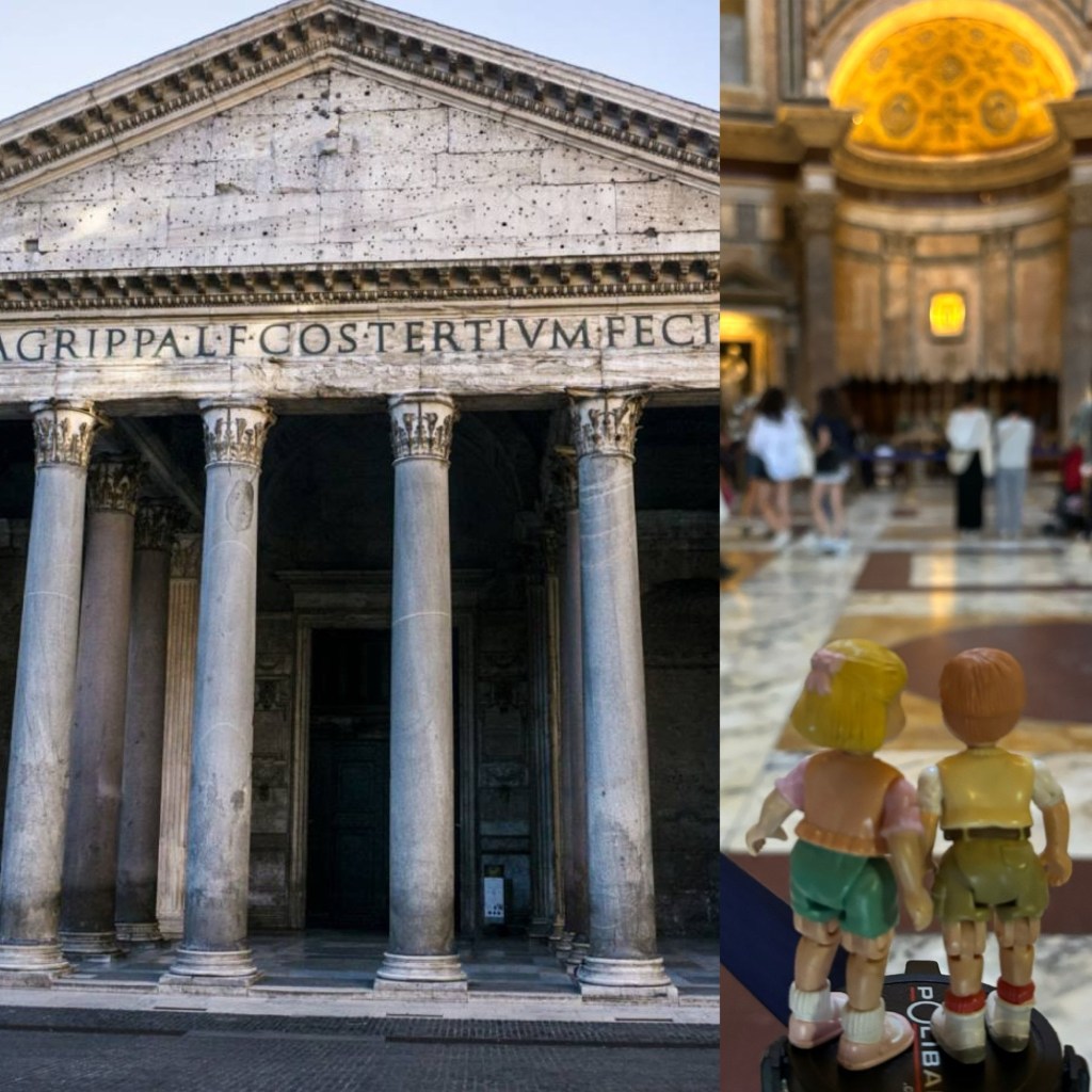 Then we headed on to see the Pantheon. This was formerly a Roman temple that was built by an emperor named Hadrian sometime around 126AD. We were told that this building is one of the best preserved ancient buildings. It has huge granite columns outside, the man said they’re called ‘Corinthian’, and inside there is a massive (unreinforced) concrete domed ceiling, and a wide open space with beautiful marble floors.