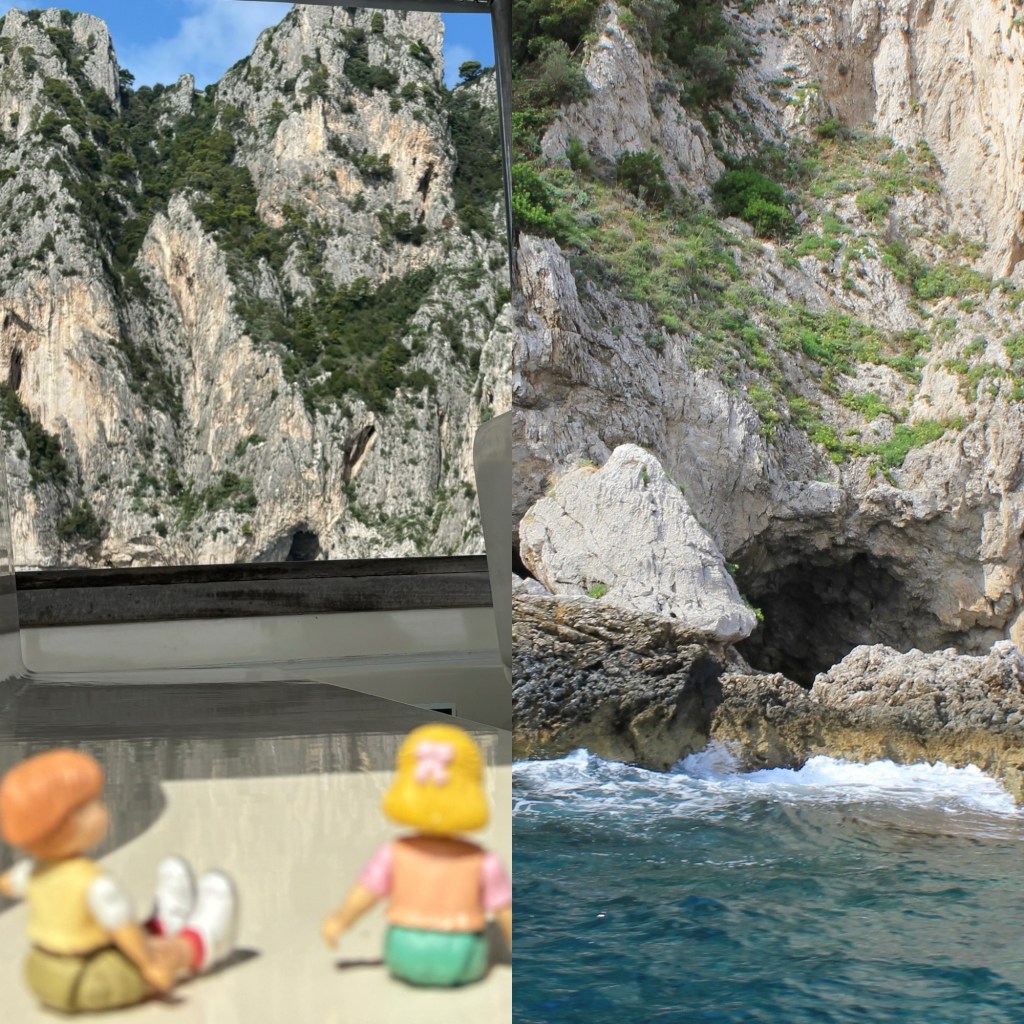 It was now time for us to get to our boat ride. It’s a really steep hill to get down to the shore so we got to ride on a funicular (and listened to the funicular song 🎶 along the way). We cruised along the shoreline to see some amazing grottos (small sea caves) with distinctive colour features. The most famous is the blue grotto, that is from the sun reflecting the blue from the water.
