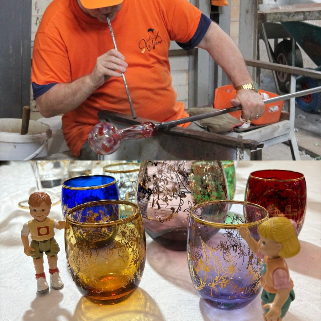 The Grand Masters that make the glass are so artistic and skilled at their craft. Apparently it takes about 7 years of apprenticeship to become a Grand Master. The glass is made using a fine silica sand, and special minerals for colouring. The glass is fired in ovens that reach 1,400°C. We saw so many amazing works from glassware and light fixtures to glass sculptures and jewelry. We even saw giant Lego people made of glass (but they wouldn’t let us take a picture).
