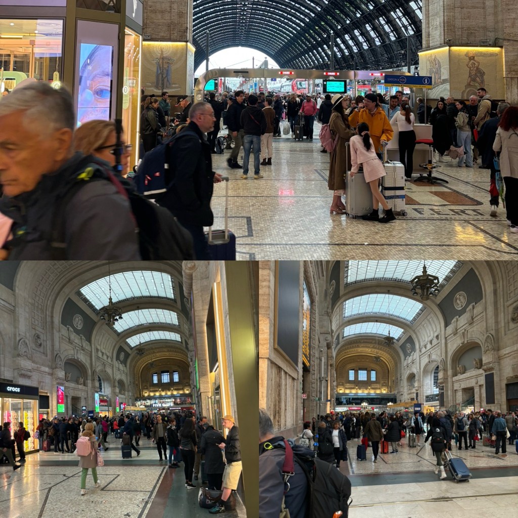 Wow! The train station in Milano is huge and super busy. We looked left and we looked right and couldn’t figure out how to get out to the street. We had to ask directions a few times before we found our way to the local transit level (3 elevators down). Then, for fun, we travelled like the locals do and headed to our hotel.