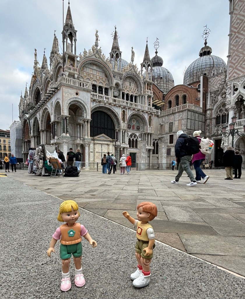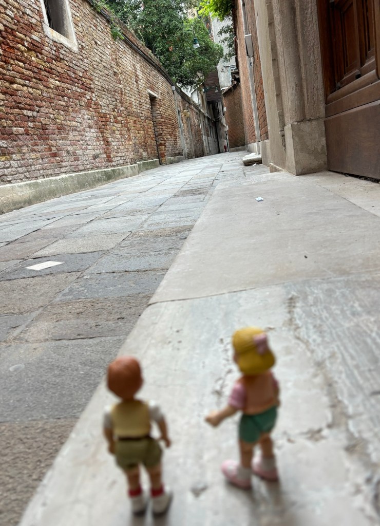 After we left our new friends for their palace visit we decided to explore the streets of Venezia. There are a maze of narrow streets (like the one on the picture) and passageways that lead from the piazzas (that’s what they call town squares), and lots of bridges to cross over the canals. We found it quite interesting to see how they would keep old walls and just build onto them to make a new home or shop, instead of tearing things down.